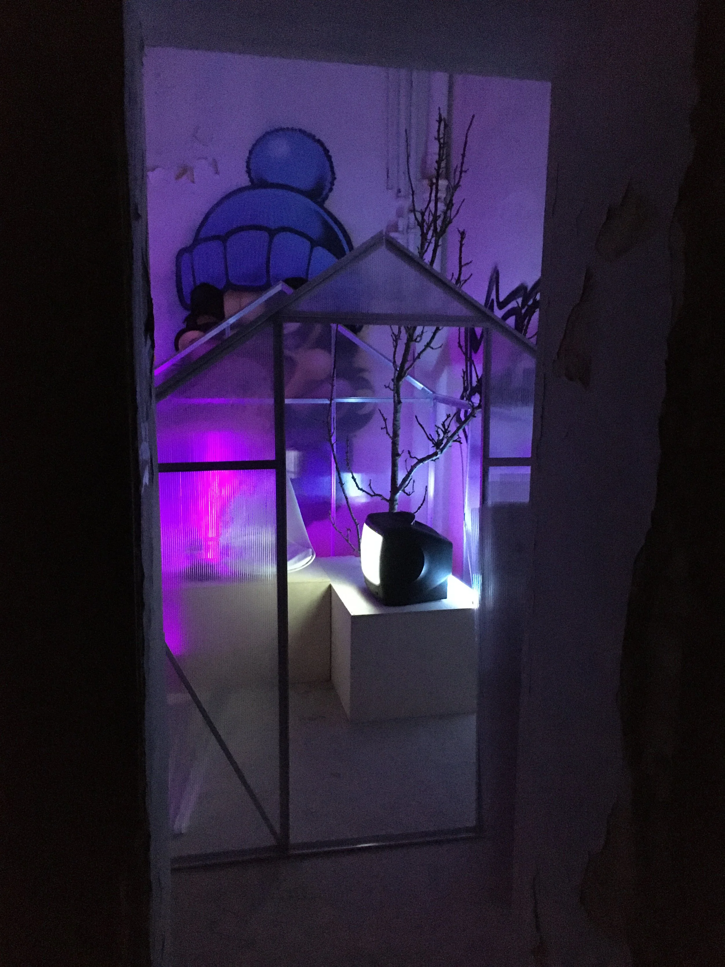 Röhrenfernseher und das im Loop dargestellte Video stehen für die Künstlichkeit